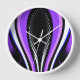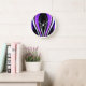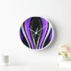 Abstract modern Purple White and Black clock design with curved lines dots and swirl patterns