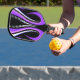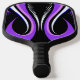Abstract modern purple, White and Black pickleball paddle design with curved lines dots and swirl patterns