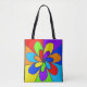 Abstract rainbow colored flower design tote bag