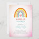 An adorable birthday party invitation perfect for any girl. This invitation features a cute abstract rainbow in orange, yellow, pink and teal and is accented with a pink heart.