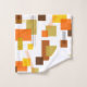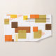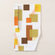 This towel set has a mid-century modern design of rectangles and lines in 1970s colors.