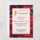Customisable Red Agate with simulated green glitter and gold cross Confirmation Invitation.
