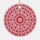 Abstract red, pink and white circular swirls pattern double sided round ceramic Christmas ornament