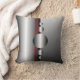 Throw Pillow with original, cool and modern metal look abstract design of circles and stripes in silvery-grey, black and red.