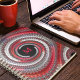 This product features beautiful spiral fractal art in red, black, grey and white.