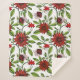 abstract red flowers and green leaves on white bac sherpa blanket