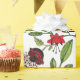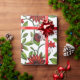 abstract red flowers and green leaves on white bac wrapping paper