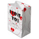 Love hearts and swirls with I love you text personalised happy valentine's day gift bag