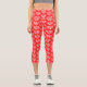 Abstract Red n White Stripes Valentine Heart Capri Leggings