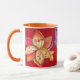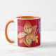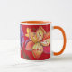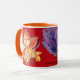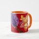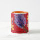 A Watercolor drawing design was created for this vibrant red mug with a purple flower centre. It is so cheerful to drink out of this mug that it makes a very lively and friendly gift for anyone. It is a unique one of a kind art object that is a beautiful and artistic mug.