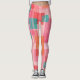 Abstract Red pink teal Geometric Squares Pattern Leggings