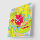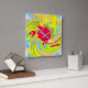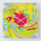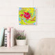 Abstract Red Rose on Yellow and Aqua Swirl Square Wall Clock