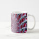 This beautiful coffee mug features an abstract red fractal art with a dash of pink, light blue and black.
