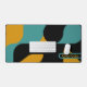 Abstract retro Patterned Personalised desk mat from Ricaso - add your own custom text. Perfect for your office desk at home or in the workplace. A fun bold pattern to help brighten your work day. designed in black orange tones.