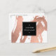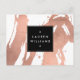 Coordinates with the Abstract Rose Gold Brushstrokes on White Business Card Template and office supplies by 1201AM. This design features a faux rose gold background of painterly brushstrokes with a black plaque overlay to hold your name or business name. An eye-catching customizable postcard design for interior designers, salons, makeup artists, style bloggers, boutiques and more. Original art and design © 1201AM CREATIVE