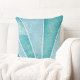 Stylish, coastal cotton throw pillow features an abstract watercolor shell design in ocean blue and tropical turquoise. Perfect for a beach house, vacation rental, and nautical home decor.