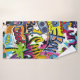 Abstract seamless comics pattern with palm tree, hand, roller, speech cloud, microphone, sunglasses, record player, graffiti style text Yo, boy, super, grunge, urban, cool, wow, lol, bff, ok.