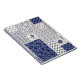 Abstract seamless delicate patchwork pattern, dark indigo blue and light beige floral lacy ornament from stylised rose flowers, leaves in Provence style. Textile design, batik paint, pillow embroidery