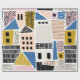 Abstract seamless pattern with houses with hand drawn textures and shapes. Vintage Illustration