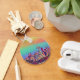 This abstract design of the Seattle skyline shows an image of the Seattle cityscape in multiple colours.