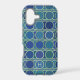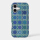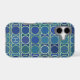 Abstract blue circle pattern with different shades of blue on monogrammed phone case.