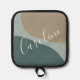 Abstract Shapes in Teal Personalised Script Name Pot Holder