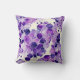 A white and purple throw pillow with an aesthetic abstract shapes pattern in a watercolor style print