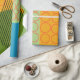This wrapping paper has a mid-century modern design of a rectangle, an oval, and a parallelogram with empty circle and parallel lines overlapping them. Want different colours? Message me.