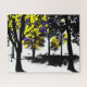 Abstract Silhouette Black White and Yellow Tree Jigsaw Puzzle