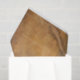 The background of this Jennifer Goldberger painting looks like a table with a forked crack in it. There is also an abstract silhouette of a flower done in white paint, just barely overriding the brown background.