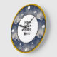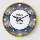 Abstract blue and smoke Frame round photo frame behind the hour marks, Place your photo here custom wall clock, your photo will appear behind the round photo frame for a truly professional look - white gold dots for hour marks - 12,3,6 and 9 being larger dots, in a diamond shaped pattern looks great on round or square clocks