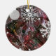 This ceramic ornament features an abstract design in festive holiday colours enhanced with wintry snowflakes. Get into the holiday spirit with this beautiful decoration.