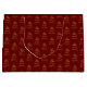 This pretty, abstract drawing of a Christmas tree in sparkling gold simulated foil is an elegant expression of the holidays on this beautiful gift bag. The simple design is a spiralling shiny gold curlicue on a burgundy background, in a pine tree shape, with tiny stars sprinkled on its "boughs." Then the tree design is repeated into a dazzling pattern.