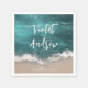 Romantic coastal themed wedding napkins feature beautiful moody abstract watercolor sparkling ocean wave and beach background, toped with stylish script and elegant font details, modern and simple, great for sand beach wedding, tropical destination wedding, coastal ocean themed wedding.