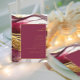 This elegant ensemble in stunning wine-red tones sets a refined tone for your wedding, tantalising your guests with a glimpse of the opulent celebration that awaits. Enhanced further with the lavish sparkle of gold glitter accents, the wedding 'Menu' card shown here provides a template to easily add your own menu selections.. Search ID1018 to see other pieces in this coordinated wedding set.