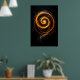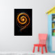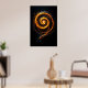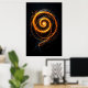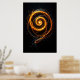 An abstract depiction of a fiery orange spiral nebula with a bright glowing centre, set against a dark background with scattered luminous particles and ethereal blue wisps. Clear details and vibran...