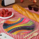 Abstract spiral rainbow colourful design paper plate
