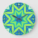 Abstract Star Geometric - Lime Green and Blue Large Clock