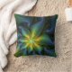 Abstract Star, Shiny Blue Green Golden Fractal Art Cushion