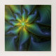 Abstract Star, Shiny Blue Green Golden Fractal Art Jigsaw Puzzle