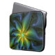 Abstract Star, Shiny Blue Green Golden Fractal Art Laptop Sleeve