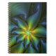 Abstract Star, Shiny Blue Green Golden Fractal Art Notebook