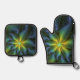 Abstract Star, Shiny Blue Green Golden Fractal Art Oven Mitt & Pot Holder Set