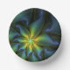 Abstract Star, Shiny Blue Green Golden Fractal Art Paper Plate