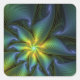 Abstract Star, Shiny Blue Green Golden Fractal Art Square Sticker