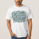 A T-shirt with an quirky hand drawn abstract surreal design, a network of shapes link together with wire like shapes which looks both natural and machine like.