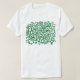 A T-shirt with an quirky hand drawn abstract surreal design, a network of shapes link together with wire like shapes which looks both natural and machine like.