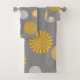 Abstract, stylised dandelions, grey, yellow, white bath towel set