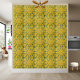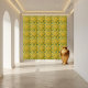 Vibrant and eye-catching ceramic tile featuring an abstract sunburst pattern in shades of yellow and green.