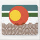 This mouse pad has a mid-century modern design of horizontal wavy lines with two circles and two horizontal broad stripes. Want different colours? Message me.